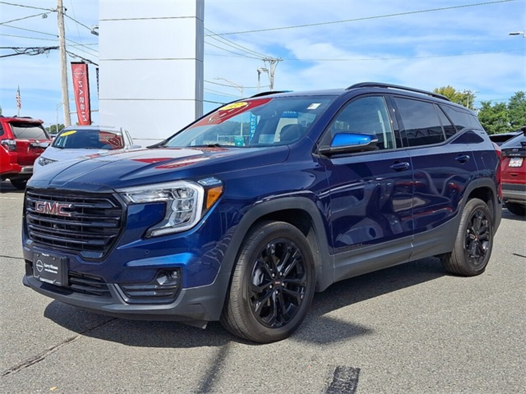 Recent Arrival! Marine Metallic 2022 GMC Terrain SLT 1.5L DOHC 9-Speed Automatic AWD CARFAX One-Owner. Clean CARFAX. Terrain SLT, 4D Sport Utility, 1.5L DOHC, 9-Speed Automatic, AWD, Marine Metallic, Jet Black Leather, 2 USB Data Ports, 2 USB Data Ports w/SD Card Reader, 3.47 Axle Ratio, 4-Wheel Disc Brakes, 6 Speakers, 6-Speaker Audio System Feature, 6-Way Power Front Passenger Seat, 8-Way Power Driver Seat Adjuster, ABS brakes, Adaptive Cruise Control, Air Conditioning, Alloy wheels, AM/FM radio: SiriusXM, Auto High-beam Headlights, Auto-dimming Rear-View mirror, Automatic temperature control, Black GMC Center Caps w/Red GMC Lettering, Black Mirror Caps, Bluetooth® For Phone, Brake assist, Bumpers: body-color, Compass, Darkened Front Grille, Delay-off headlights, Driver & Front Passenger Heated Seats, Driver door bin, Driver vanity mirror, Dual front impact airbags, Dual front side impact airbags, Electronic Stability Control, Elevation Edition, Emergency communication system: OnStar Guidance, Four wheel independent suspension, Front & Rear Park Assist, Front anti-roll bar, Front Bucket Seats, Front Center Armrest, Front dual zone A/C, Front fog lights, Front Passenger 2-Way Power Lumbar, Front reading lights, Fully automatic headlights, Garage door transmitter, GMC Pro Safety Plus, HD Surround Vision, Head-Up Display, Heated door mirrors, Heated front seats, Heated steering wheel, Illuminated entry, Lane Change Alert w/Side Blind Zone Alert, Lane Departure Warning System, License Plate Front Mounting Package, Low tire pressure warning, Memory seat, Occupant sensing airbag, Outside temperature display, Overhead airbag, Overhead console, Panic alarm, Passenger door bin, Passenger vanity mirror, Perforated Leather-Appointed Seat Trim, Power door mirrors, Power Driver Lumbar Control, Power driver seat, Power Liftgate, Power passenger seat, Power steering, Power windows, Preferred Equipment Group 4SA, Radio data system, Radio: GMC Infotainment Audio System w/8" Display, Rear Cross-Traffic Alert, Rear Park Assist, Rear seat center armrest, Rear window defroster, Rear window wiper, Remote keyless entry, Roof rack: rails only, Roof-Mounted Luggage Rack Side Rails, Safety Alert Seat, Security system, Skyscape Power Sunroof w/Power Sunscreen, Speed control, Speed-sensing steering, Split folding rear seat, Spoiler, Steering wheel mounted audio controls, Tachometer, Tech Package, Telescoping steering wheel, Tilt steering wheel, Traction control, Trip computer, Turn signal indicator mirrors, Variably intermittent wipers, Wheels: 18" x 7" Silver Painted Aluminum, Wheels: 19" x 7.5" Gloss Black Painted Aluminum, Wireless Apple CarPlay/Wireless Android Auto.