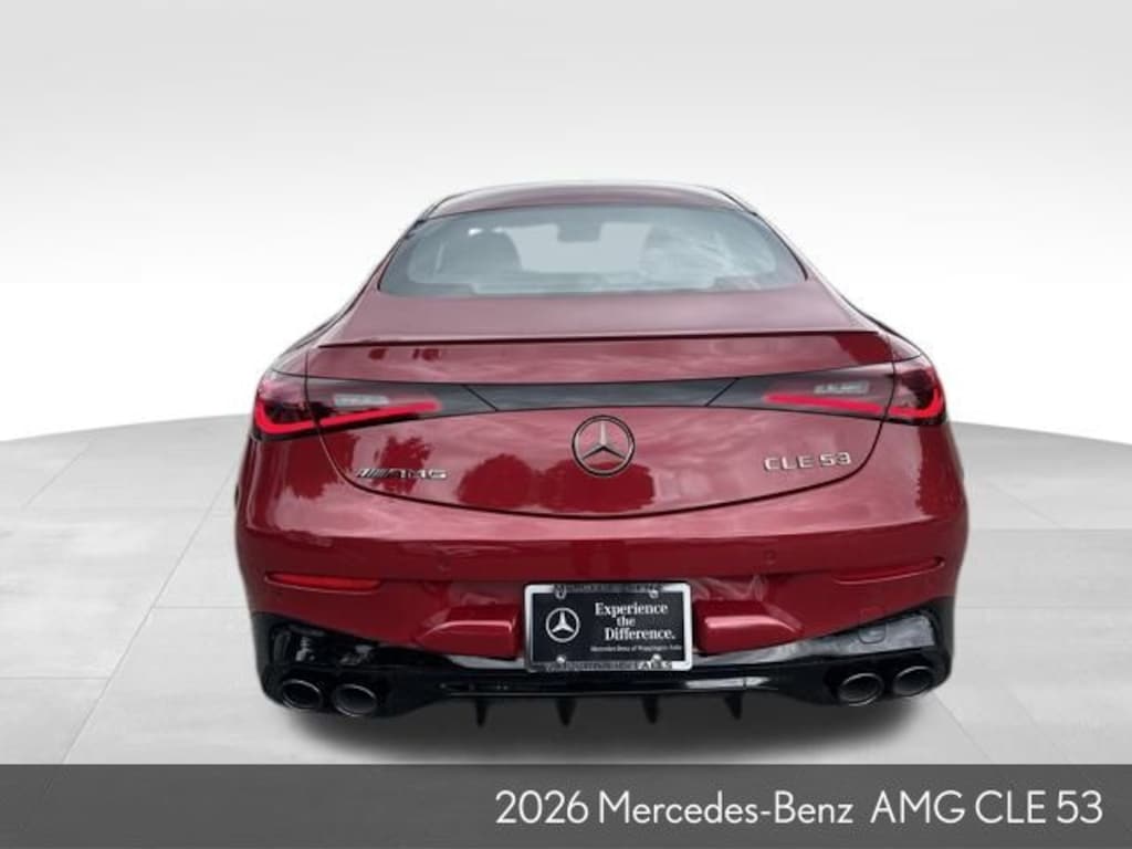 Recent Arrival! CARFAX One-Owner. Clean CARFAX. MANUFAKTUR Patagonia Red Metallic 2026 Mercedes-Benz CLE 53 AMG® 4MATIC® 2D Coupe 4MATIC® 3.0L I6 Turbo 3.0L I6 Turbo, Active Distance Assist DISTRONIC®, AMG® Night Package II, AMG® Night Package Plus, Badging on Wings & Trunk Lid in Black, Darkened AMG® Specific Radiator Grille, Dashcam, Heated Front Seats, Heated Steering Wheel, High-Gloss Black Elements, Ventilated Front Seats.