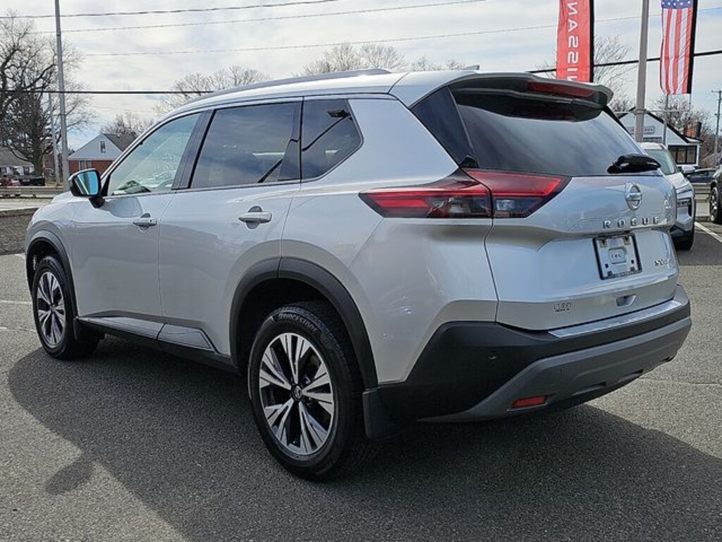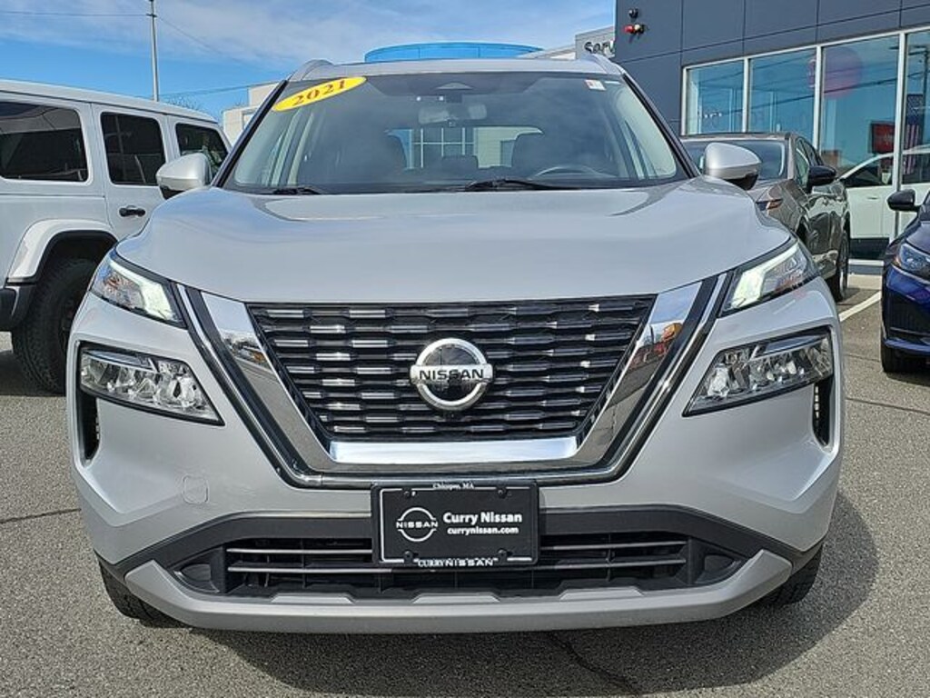 Recent Arrival! Brilliant Silver Metallic 2021 Nissan Rogue SV 2.5L I4 DOHC 16V CVT with Xtronic AWD CARFAX One-Owner. Certified. Rogue SV, Nissan Certified Certified, 4D Sport Utility, 2.5L I4 DOHC 16V, CVT with Xtronic, AWD, Brilliant Silver Metallic, Charcoal Cloth, 18" Aluminum Alloy Wheels, 4-Wheel Disc Brakes, 5.604 Axle Ratio, 6 Speakers, ABS brakes, Air Conditioning, Alloy wheels, AM/FM Radio, AM/FM radio, Auto High-beam Headlights, Automatic temperature control, Backup Camera, Black Splash Guards (Set of 4), Brake assist, Bumpers: body-color, Chrome Rear Bumper Protector, Cloth Seat Trim, Delay-off headlights, Driver door bin, Driver vanity mirror, Dual front impact airbags, Dual front side impact airbags, Electronic Stability Control, Emergency communication system: NissanConnect Services, First Aid Kit, Floor Mats w/1-Piece Cargo Area Protector, Four wheel independent suspension, Front anti-roll bar, Front Bucket Seats, Front Center Armrest, Front dual zone A/C, Front reading lights, Fully automatic headlights, Heated door mirrors, Heated Driver & Front Passenger Seats, Heated Leather-Wrapped Steering Wheel, Illuminated entry, Knee airbag, Leatherette Seat Trim, Low tire pressure warning, NissanConnect featuring Apple CarPlay and Android Auto, Occupant sensing airbag, Outside temperature display, Overhead airbag, Overhead console, Panic alarm, Passenger door bin, Passenger vanity mirror, Power door mirrors, Power driver seat, Power Liftgate, Power Panoramic Moonroof, Power steering, Power windows, Premium Package, Radio data system, Rear anti-roll bar, Rear seat center armrest, Rear side impact airbag, Rear window defroster, Rear window wiper, Remote keyless entry, Roof Rails, Second Row Sunshades, Security system, Speed control, Speed-Sensitive Wipers, Split folding rear seat, Spoiler, Steering wheel mounted audio controls, Tachometer, Telescoping steering wheel, Tilt steering wheel, Traction control, Trip computer, Turn signal indicator mirrors, Variably intermittent wipers.