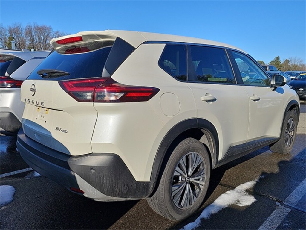 Recent Arrival! Pearl White Tricoat 2023 Nissan Rogue SV 1.5L I3 Turbocharged DOHC 12V LEV3-ULEV50 201hp CVT with Xtronic AWD Certified. Rogue SV, Nissan Certified Certified, 4D Sport Utility, 1.5L I3 Turbocharged DOHC 12V LEV3-ULEV50 201hp, CVT with Xtronic, AWD, Pearl White Tricoat, Light Gray Cloth, 18" Aluminum Alloy Wheels, 4-Wheel Disc Brakes, 5.604 Axle Ratio, 6 Speakers, ABS brakes, Air Conditioning, Alloy wheels, AM/FM Radio, AM/FM radio: SiriusXM, Auto High-beam Headlights, Automatic temperature control, Backup Camera, Brake assist, Bumpers: body-color, Cloth Seat Trim, Delay-off headlights, Driver door bin, Driver vanity mirror, Dual front impact airbags, Dual front side impact airbags, Electronic Stability Control, Emergency communication system: NissanConnect Services, First Aid Kit, Floor Mats w/1-Piece Cargo Area Protector, Four wheel independent suspension, Front anti-roll bar, Front Bucket Seats, Front Center Armrest, Front dual zone A/C, Front reading lights, Fully automatic headlights, Heated door mirrors, Illuminated entry, Knee airbag, Low tire pressure warning, NissanConnect featuring Apple CarPlay and Android Auto, Occupant sensing airbag, Outside temperature display, Overhead airbag, Overhead console, Panic alarm, Passenger door bin, Passenger vanity mirror, Power door mirrors, Power driver seat, Power steering, Power windows, Radio data system, Rear anti-roll bar, Rear seat center armrest, Rear side impact airbag, Rear window defroster, Rear window wiper, Remote keyless entry, Speed control, Speed-Sensitive Wipers, Split folding rear seat, Spoiler, Steering wheel mounted audio controls, Tachometer, Telescoping steering wheel, Tilt steering wheel, Traction control, Trip computer, Variably intermittent wipers.