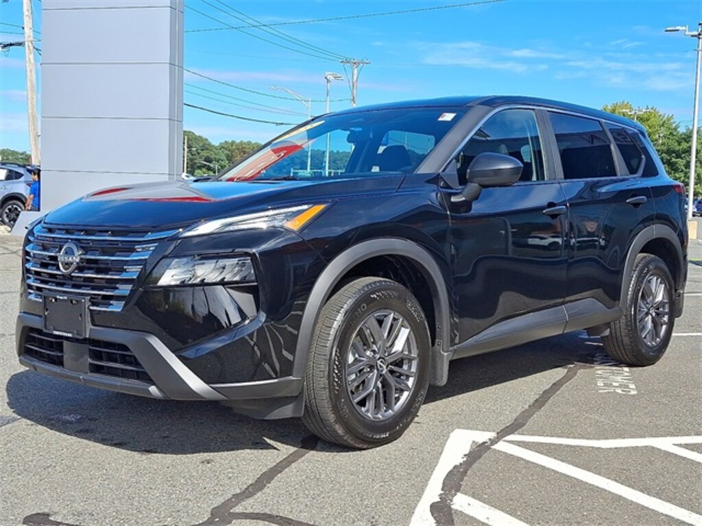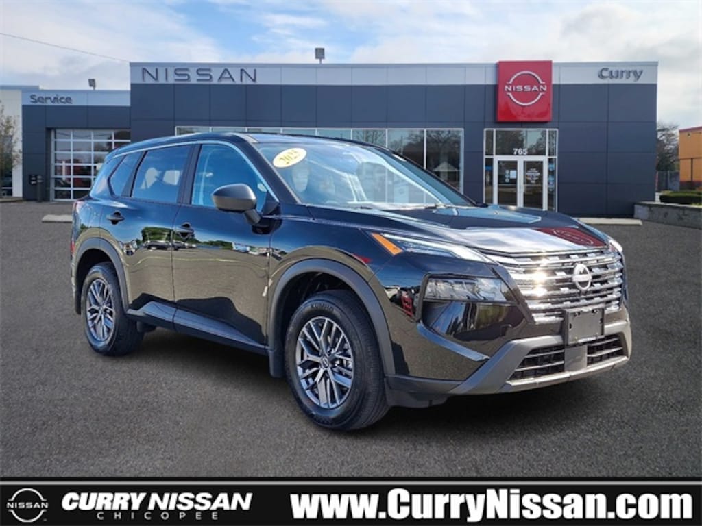 Super Black 2025 Nissan Rogue S 1.5L DOHC CVT with Xtronic AWD CARFAX One-Owner. Clean CARFAX. Certified. Rogue S, Nissan Combined Certified, 4D Sport Utility, 1.5L DOHC, AWD, Super Black, Charcoal Cloth, 17" Aluminum Alloy Wheels, 4 Speakers, 4-Wheel Disc Brakes, ABS brakes, Air Conditioning, Alloy wheels, AM/FM radio: SiriusXM, Apple CarPlay/Android Auto, Auto High-beam Headlights, Black Splash Guards (Set of 4), Blind Spot Warning, Brake assist, Bumpers: body-color, Cloth Seat Trim, Delay-off headlights, Driver door bin, Driver vanity mirror, Dual front impact airbags, Dual front side impact airbags, Electronic Stability Control, First Aid Kit, Floor Mats w/1-Piece Cargo Area Protector, Four wheel independent suspension, Front anti-roll bar, Front Bucket Seats, Front Center Armrest, Front reading lights, Fully automatic headlights, Illuminated entry, Knee airbag, Low tire pressure warning, Occupant sensing airbag, Outside temperature display, Overhead airbag, Overhead console, Panic alarm, Passenger door bin, Passenger vanity mirror, Power door mirrors, Power steering, Power windows, Radio data system, Radio: AM/FM NissanConnect, Rear anti-roll bar, Rear seat center armrest, Rear side impact airbag, Rear window wiper, Remote keyless entry, Speed control, Speed-sensing steering, Speed-Sensitive Wipers, Split folding rear seat, Spoiler, Steering wheel mounted audio controls, Traction control, Variably intermittent wipers.