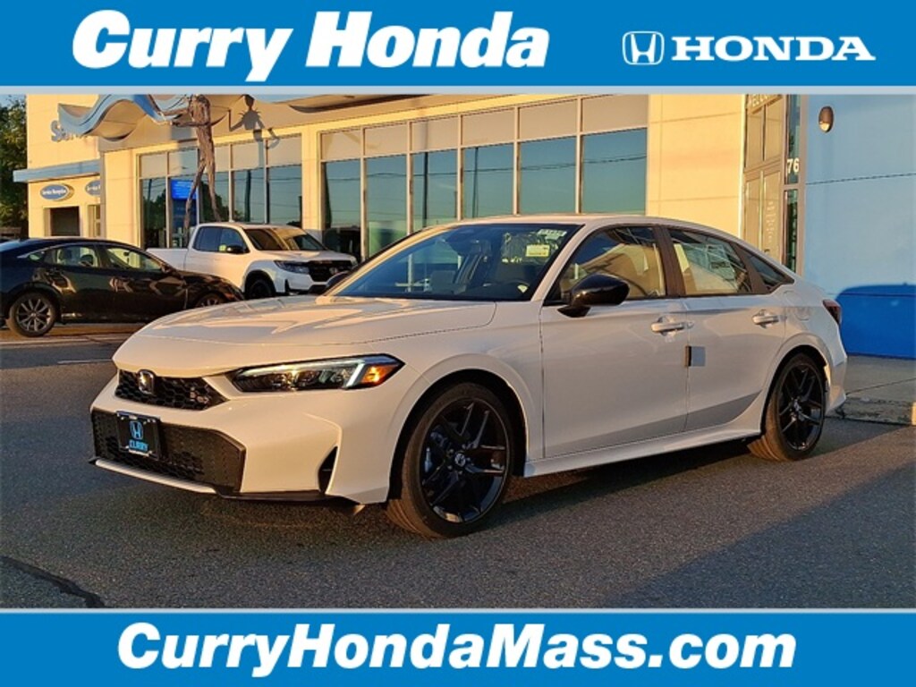 Recent Arrival! PLATINUM_WHITE_PEA 2026 Honda Civic Hybrid Sport Call for availability (413) 593-6721.