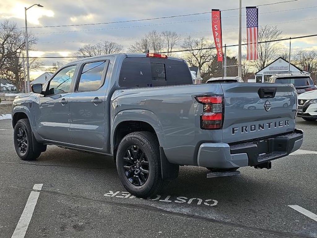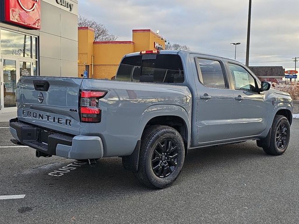 Boulder Gray Pearl 2026 Nissan Frontier SV 4WD 9-Speed Automatic with Overdrive 3.8L DI DOHC 24V V6 Frontier SV, 4D Crew Cab, 3.8L DI DOHC 24V V6, 9-Speed Automatic with Overdrive, 4WD, Boulder Gray Pearl, Charcoal Cloth, 17" Alloy Wheels, 3.692 Axle Ratio, 4-Wheel Disc Brakes, 6 Speakers, ABS brakes, Air Conditioning, Alloy wheels, AM/FM radio: SiriusXM, Anti-whiplash front head restraints, Auto High-beam Headlights, Black Tailgate Logo Insert, Blind Spot Warning, Brake assist, Bumpers: body-color, Carpeted Floor Mats, Dark Armor Package, Dark FRONTIER Tailgate Lettering, Dark Grill Surround/Mesh/Inner Fascia, Dark Mirror Caps, Delay-off headlights, Driver door bin, Driver vanity mirror, Drop-In Bed Liner & Bumper Step, Dual front impact airbags, Dual front side impact airbags, Electronic Stability Control, Emergency communication system, Front anti-roll bar, Front Bucket Seats, Front Center Armrest, Front reading lights, Front wheel independent suspension, Fully automatic headlights, Illuminated entry, Knee airbag, Low tire pressure warning, Occupant sensing airbag, Overhead airbag, Overhead console, Panic alarm, Passenger door bin, Passenger vanity mirror, Power door mirrors, Power driver seat, Power steering, Power windows, Premium Cloth Seat Trim, Premium Paint, Radio data system, Radio: SXM/AM/FM/AUX/USB Audio System, Rear anti-roll bar, Rear seat center armrest, Rear side impact airbag, Rear step bumper, Remote keyless entry, Security system, Speed control, Speed-sensing steering, Splash Guards, Split folding rear seat, Steering wheel mounted audio controls, Tachometer, Telescoping steering wheel, Tilt steering wheel, Tow Package, Tow/Haul Mode Switch, Traction control, Trip computer, Variably intermittent wipers, Voltmeter, Wheels: 17" Dark, Wireless Apple CarPlay/Wireless Android Auto.