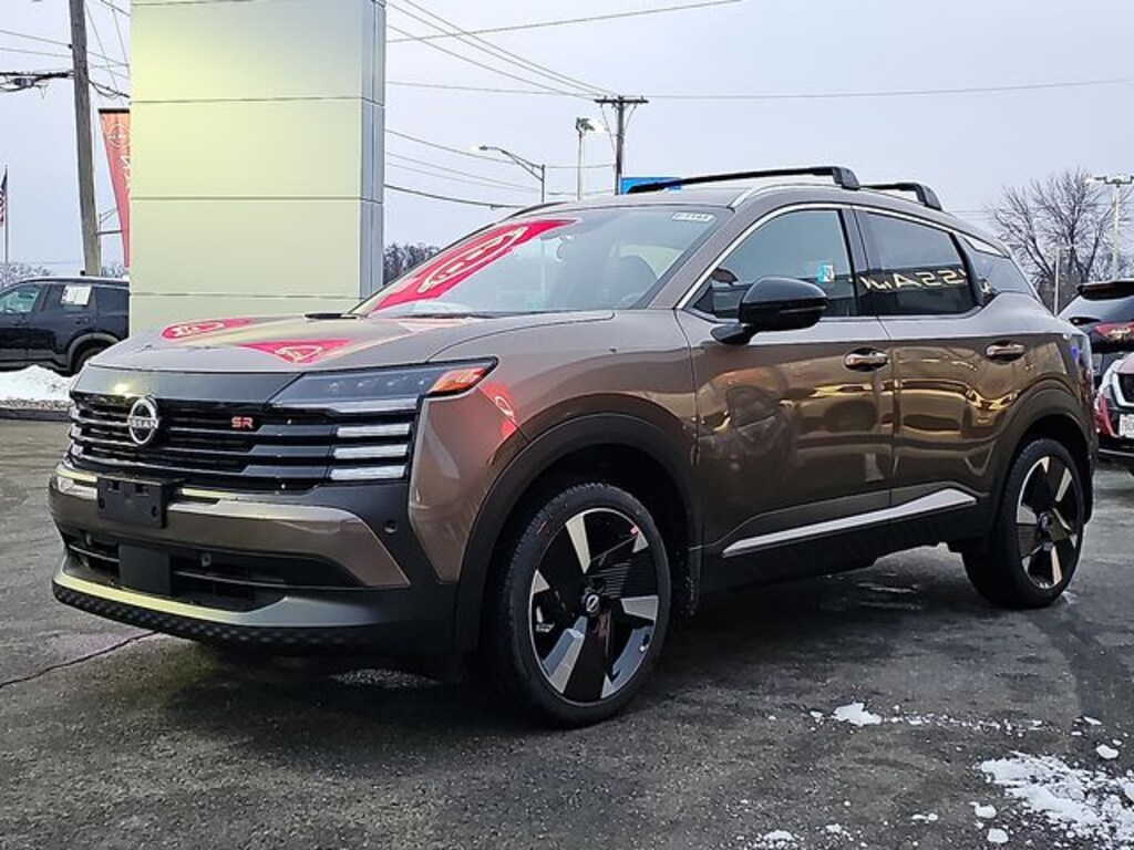 Canyon Bronze Metallic 2026 Nissan Kicks SR AWD CVT with Xtronic 2.0L DOHC Kicks SR, 4D Sport Utility, 2.0L DOHC, CVT with Xtronic, AWD, Canyon Bronze Metallic, Sport Cloth, 17" Alloy Wheels, 19" Alloy Wheels, 4-Wheel Disc Brakes, 6 Speakers, ABS brakes, Air Conditioning, Alloy wheels, AM/FM radio, Auto High-beam Headlights, Automatic temperature control, Brake assist, Bumpers: body-color, Carpeted Floor Mats, Cold Weather Package, Crossbars, Delay-off headlights, Driver door bin, Driver vanity mirror, Dual front impact airbags, Dual front side impact airbags, Electronic Stability Control, Emergency communication system: NissanConnect Services, Exterior Parking Camera Rear, Four wheel independent suspension, Front anti-roll bar, Front Bucket Seats, Front Center Armrest, Front reading lights, Fully automatic headlights, Garage door transmitter: myQ Connected Garage, Heated Front Seats, Heated Mirrors, Illuminated entry, Knee airbag, Leather Shift Knob, Leather steering wheel, Low tire pressure warning, NissanConnect featuring Apple CarPlay and Android Auto, Occupant sensing airbag, Outside temperature display, Overhead airbag, Overhead console, Panic alarm, Passenger door bin, Passenger vanity mirror, Power door mirrors, Power steering, Power windows, Radio data system, Radio: AM/FM/SiriusXM Audio System, Rear anti-roll bar, Rear Floor Heater Ducts, Rear reading lights, Rear seat center armrest, Rear side impact airbag, Rear window defroster, Rear window wiper, Remote keyless entry, Security system, Speed control, Speed-sensing steering, Splash Guards, Split folding rear seat, Spoiler, Sport Leatherette with Cloth Insert Seat Trim, Sport steering wheel, Steering wheel mounted audio controls, Tachometer, Telescoping steering wheel, Tilt steering wheel, Traction control, Trip computer, Turn signal indicator mirrors, Variably intermittent wipers.