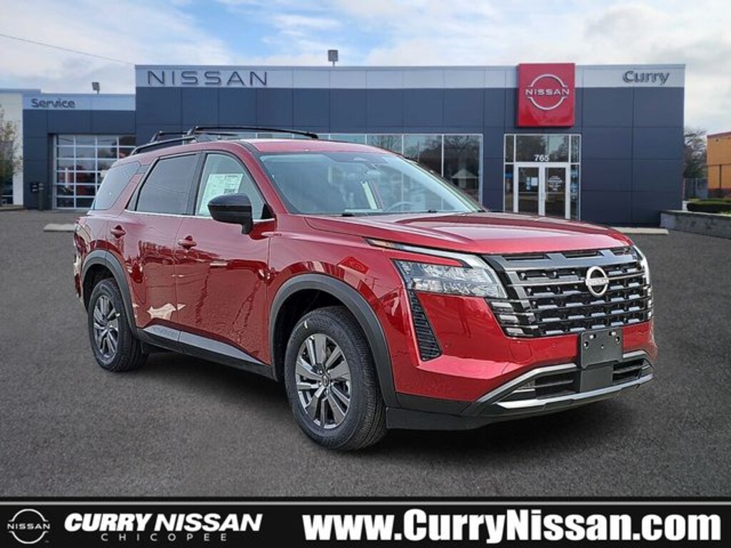Recent Arrival! Scarlet Ember Tintcoat 2026 Nissan Pathfinder SV 4WD 9-Speed Automatic 3.5L V6 DOHC Pathfinder SV, 4D Sport Utility, 3.5L V6 DOHC, 9-Speed Automatic, 4WD, Scarlet Ember Tintcoat, Charcoal Cloth, 18" Painted Alloy Wheels, 3rd row seats: bench, 4-Wheel Disc Brakes, 6 Speakers, ABS brakes, Air Conditioning, Alloy wheels, AM/FM radio: SiriusXM w/360L, Auto High-beam Headlights, Automatic temperature control, Bench Seat Carpeted Floor Mats, Brake assist, Bumpers: body-color, Cloth Seating Surfaces, Cross Bars, Delay-off headlights, Driver door bin, Driver vanity mirror, Dual front impact airbags, Dual front side impact airbags, Electronic Stability Control, Emergency communication system: NissanConnect Services, Four wheel independent suspension, Front anti-roll bar, Front Bucket Seats, Front Center Armrest, Front dual zone A/C, Front reading lights, Fully automatic headlights, Garage door transmitter: myQ Connected Garage, Heated door mirrors, Heated Front Bucket Seats, Heated front seats, Illuminated entry, Knee airbag, Low tire pressure warning, NissanConnect featuring Apple CarPlay and Android Auto, Occupant sensing airbag, Outside temperature display, Overhead airbag, Overhead console, Panic alarm, Passenger door bin, Passenger vanity mirror, Power door mirrors, Power driver seat, Power Liftgate, Power steering, Power windows, Premium Paint, Radio data system, Radio: AM/FM Audio System with NissanConnect, Rear air conditioning, Rear anti-roll bar, Rear reading lights, Rear seat center armrest, Rear side impact airbag, Rear window defroster, Rear window wiper, Reclining 3rd row seat, Remote keyless entry, Security system, Speed control, Speed-sensing steering, Split folding rear seat, Spoiler, Steering wheel mounted audio controls, Tachometer, Telescoping steering wheel, Tilt steering wheel, Traction control, Trip computer, Variably intermittent wipers.