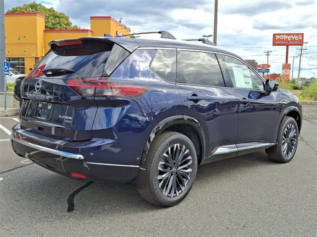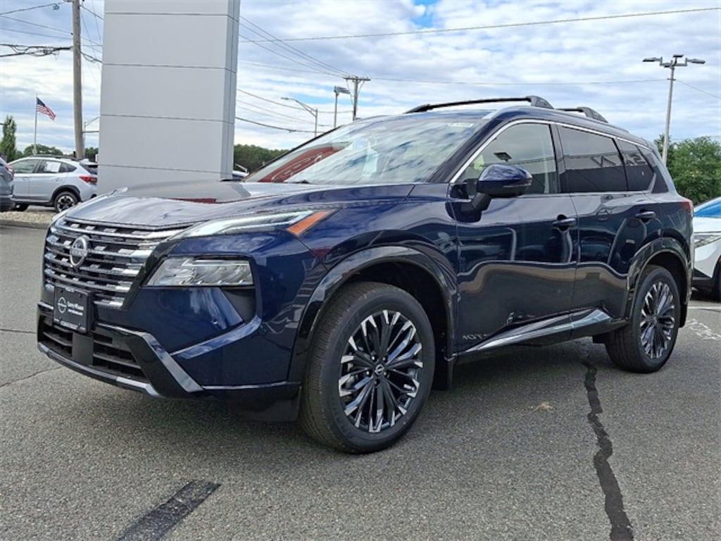 Deep Ocean Blue 2026 Nissan Rogue Platinum AWD CVT with Xtronic 1.5L DOHC Rogue Platinum, 4D Sport Utility, 1.5L DOHC, CVT with Xtronic, AWD, Deep Ocean Blue, Charcoal Leather, 10 Speakers, 4-Wheel Disc Brakes, ABS brakes, Air Conditioning, Alloy wheels, AM/FM radio: SiriusXM w/360L, Auto High-beam Headlights, Auto-dimming Rear-View mirror, Automatic temperature control, Black Splash Guards (Set of 4), Bose Premium Audio System, Brake assist, Bumpers: body-color, Chrome Rear Bumper Protector, Delay-off headlights, Driver door bin, Driver vanity mirror, Dual front impact airbags, Dual front side impact airbags, Electronic Stability Control, Emergency communication system: NissanConnect Services, First Aid Kit, Floor Mats w/2-Piece Cargo Area Protector, Four wheel independent suspension, Front anti-roll bar, Front Bucket Seats, Front Center Armrest, Front dual zone A/C, Front reading lights, Fully automatic headlights, Garage door transmitter: myQ Connected Garage, Head-Up Display, Heads-Up Display, Heated door mirrors, Heated Front Bucket Seats, Heated front seats, Heated Rear Seats, Heated rear seats, Heated steering wheel, Illuminated entry, Knee airbag, Low tire pressure warning, Memory seat, Motion-Activated Power Liftgate, Navigation system: Google Maps, Occupant sensing airbag, Outside temperature display, Overhead airbag, Overhead console, Panic alarm, Passenger door bin, Passenger vanity mirror, Platinum Premium Package, Power door mirrors, Power driver seat, Power Liftgate, Power moonroof, Power passenger seat, Power steering, Power windows, Quilted Semi-Aniline Leather-Appointed Seat Trim, Radio data system, Radio: AM/FM NissanConnect w/Navigation, Rain sensing wipers, Rear air conditioning, Rear anti-roll bar, Rear reading lights, Rear seat center armrest, Rear side impact airbag, Rear window defroster, Rear window wiper, Remote keyless entry, Roof Rail Cross Bars, Security system, Speed control, Speed-sensing steering, Speed-Sensitive Wipers, Split folding rear seat, Spoiler, Steering wheel mounted audio controls, Tachometer, Telescoping steering wheel, Tilt steering wheel, Traction control, Tri-Zone Automatic Temperature Control, Trip computer, Turn signal indicator mirrors, Variably intermittent wipers, Wheels: 19" Unique Dark Painted Aluminum Alloy, Wireless Apple CarPlay/Wireless Android Auto.