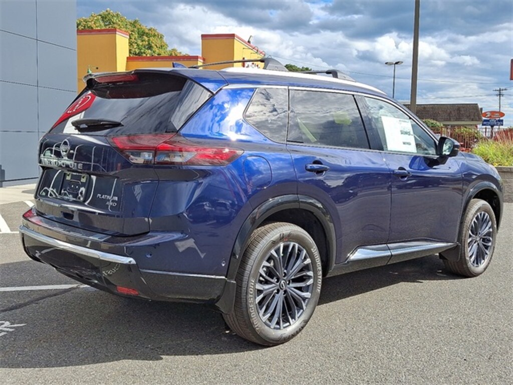 Deep Ocean Blue 2026 Nissan Rogue Platinum AWD CVT with Xtronic 1.5L DOHC Rogue Platinum, 4D Sport Utility, 1.5L DOHC, CVT with Xtronic, AWD, Deep Ocean Blue, Charcoal Leather, 10 Speakers, 4-Wheel Disc Brakes, ABS brakes, Air Conditioning, Alloy wheels, AM/FM radio: SiriusXM w/360L, Auto High-beam Headlights, Auto-dimming Rear-View mirror, Automatic temperature control, Black Splash Guards (Set of 4), Bose Premium Audio System, Brake assist, Bumpers: body-color, Chrome Rear Bumper Protector, Delay-off headlights, Driver door bin, Driver vanity mirror, Dual front impact airbags, Dual front side impact airbags, Electronic Stability Control, Emergency communication system: NissanConnect Services, First Aid Kit, Floor Mats w/2-Piece Cargo Area Protector, Four wheel independent suspension, Front anti-roll bar, Front Bucket Seats, Front Center Armrest, Front dual zone A/C, Front reading lights, Fully automatic headlights, Garage door transmitter: myQ Connected Garage, Head-Up Display, Heads-Up Display, Heated door mirrors, Heated Front Bucket Seats, Heated front seats, Heated Rear Seats, Heated rear seats, Heated steering wheel, Illuminated entry, Knee airbag, Low tire pressure warning, Memory seat, Motion-Activated Power Liftgate, Navigation system: Google Maps, Occupant sensing airbag, Outside temperature display, Overhead airbag, Overhead console, Panic alarm, Passenger door bin, Passenger vanity mirror, Platinum Premium Package, Power door mirrors, Power driver seat, Power Liftgate, Power moonroof, Power passenger seat, Power steering, Power windows, Quilted Semi-Aniline Leather-Appointed Seat Trim, Radio data system, Radio: AM/FM NissanConnect w/Navigation, Rain sensing wipers, Rear air conditioning, Rear anti-roll bar, Rear reading lights, Rear seat center armrest, Rear side impact airbag, Rear window defroster, Rear window wiper, Remote keyless entry, Roof Rail Cross Bars, Security system, Speed control, Speed-sensing steering, Speed-Sensitive Wipers, Split folding rear seat, Spoiler, Steering wheel mounted audio controls, Tachometer, Telescoping steering wheel, Tilt steering wheel, Traction control, Tri-Zone Automatic Temperature Control, Trip computer, Turn signal indicator mirrors, Variably intermittent wipers, Wheels: 19" Unique Dark Painted Aluminum Alloy, Wireless Apple CarPlay/Wireless Android Auto.