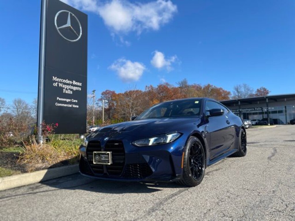 Recent Arrival! CARFAX One-Owner. Clean CARFAX. Tanzanite Blue II Metallic 2026 BMW M4 Base 2D Coupe RWD 3.0L I6 Turbocharged DOHC 24V LEV3-ULEV70 473hp 16 Speakers, Apple CarPlay & Android Auto Compatibility, Connected Package Pro Limited Term, Executive Package, Galvanic Controls, harman/kardon Surround Sound System, Heated front seats, Heated steering wheel, Live Cockpit Pro w/Navigation, Parking Assistance Package, Parking Assistant Plus, Parking View w/3D View (Surround View), Wheels: 19" x 9.5" Fr/20" x 10.5" Rr M Double-Spk, Carbon Fiber Roof.