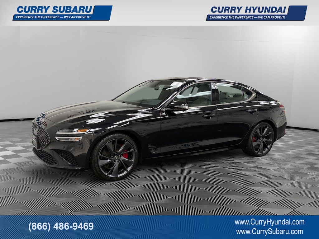 Recent Arrival! Clean CARFAX. CARFAX One-Owner. Vik Black 2023 Genesis G70 3.3T 4D Sedan AWD 3.3L V6 DGI DOHC 24V 8-Speed Automatic with SHIFTRONIC