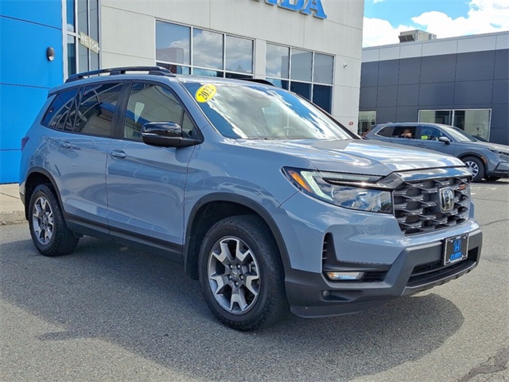 CARFAX One-Owner. Sonic Gray Pearl 2022 Honda Passport TrailSport AWD 9-Speed Automatic 3.5L V6 24V SOHC i-VTEC 19/24 City/Highway MPG