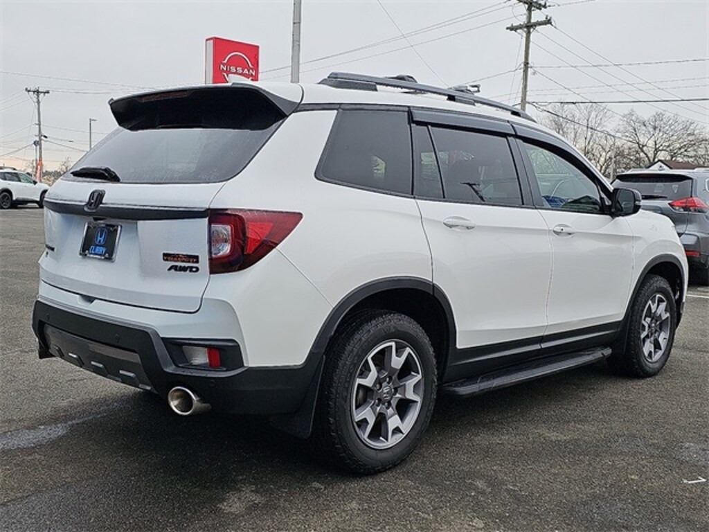 CARFAX One-Owner. Clean CARFAX. White 2023 Honda Passport TrailSport AWD 9-Speed Automatic 3.5L V6 24V SOHC i-VTEC 19/24 City/Highway MPG