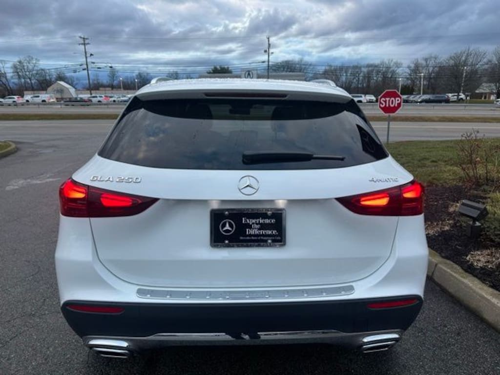 CARFAX One-Owner. Clean CARFAX. White 2025 Mercedes-Benz GLA 250 4MATIC® 4D Sport Utility 4MATIC® 2.0L I4 Turbocharged 25/33 City/Highway MPG Apple CarPlay®/Android Auto®, Auto High-beam Headlights, Auto-dimming door mirrors, Auto-dimming Rear-View mirror, Automatic temperature control, Dual front impact airbags, Dual front side impact airbags, Emergency communication system: eCall Emergency System and Active Emergency Stop Assist, Exterior Parking Camera Rear, Front fog lights, Fully automatic headlights, Heated door mirrors, Illuminated entry, Knee airbag, Leather steering wheel, Memory seat, Occupant sensing airbag, Overhead airbag, Power door mirrors, Power Liftgate, Power windows, Rain sensing wipers, Security system, Wheels: 18" Twin 5-Spoke AERO.