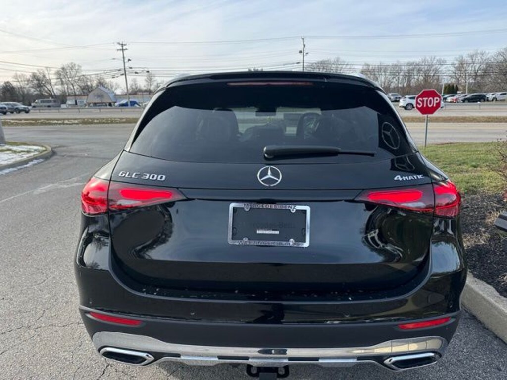 CARFAX One-Owner. Clean CARFAX. Black 2026 Mercedes-Benz GLC 300 4MATIC® 4D Sport Utility 4MATIC® I4 23/31 City/Highway MPG Odometer is 1692 miles below market average! Burmester® Surround Sound System: Regd trademark of Burmester Audiosysteme GmbH, Berlin, Germany, Auto High-beam Headlights, Class II Trailer Hitch, Enhanced Ambient Lighting, Exclusive Trim, Fully automatic headlights, GUARD 360, Heated front seats, Heated Steering Wheel, Illuminated Door Sills, Inductive Wireless Charging, MB Navigation, Mbux Entertainment Plus, Panorama Sunroof, Power Liftgate, Rain sensing wipers, Surround View System, Ventilated Front Seats, Wireless Android Auto®, Wireless Apple CarPlay®.
